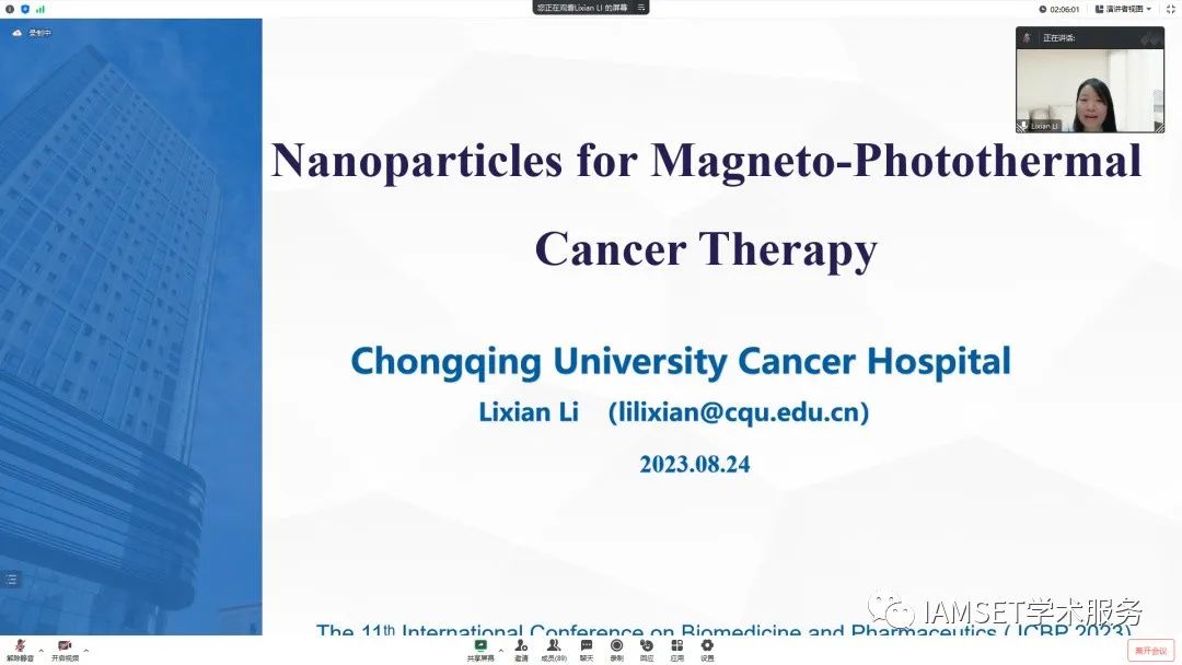 Dr. Lixian Li from Department of Pharmacy, Chongqing University Cancer Hospital gave a speech title “Nanoparticles for Magneto-Photothermal Cancer Therapy”.