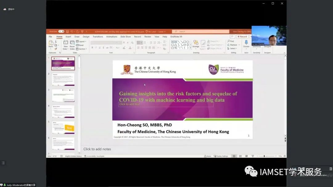 Dr. Hon-Cheong So, the associate professor from the Chinese University of Hong Kong, delivered a presentation titled “Gaining insights into the risk factors and sequelae of COVID-19 with machine learning and big data”.